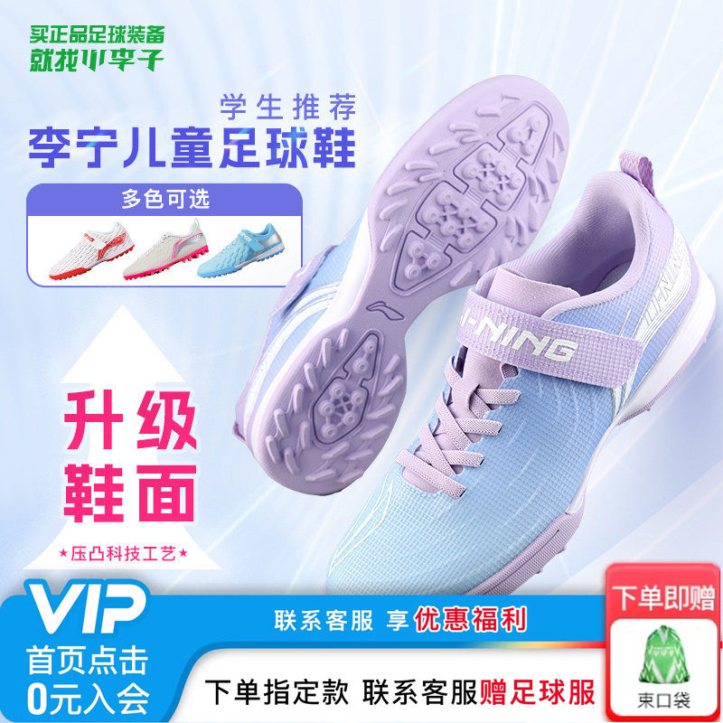 李宁儿童足球鞋男童碎钉TF正品少儿小学生女孩青少年专用训练球鞋
