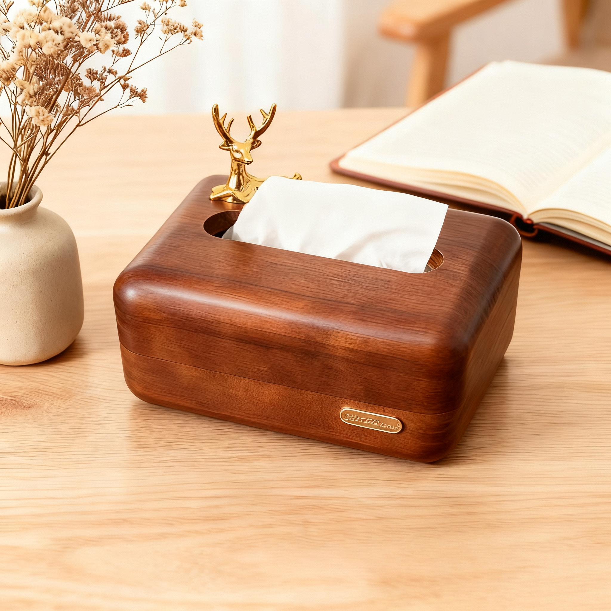 实木纸巾盒桌面收纳盒胡桃木轻奢高端中式创意家用客厅餐厅抽纸盒