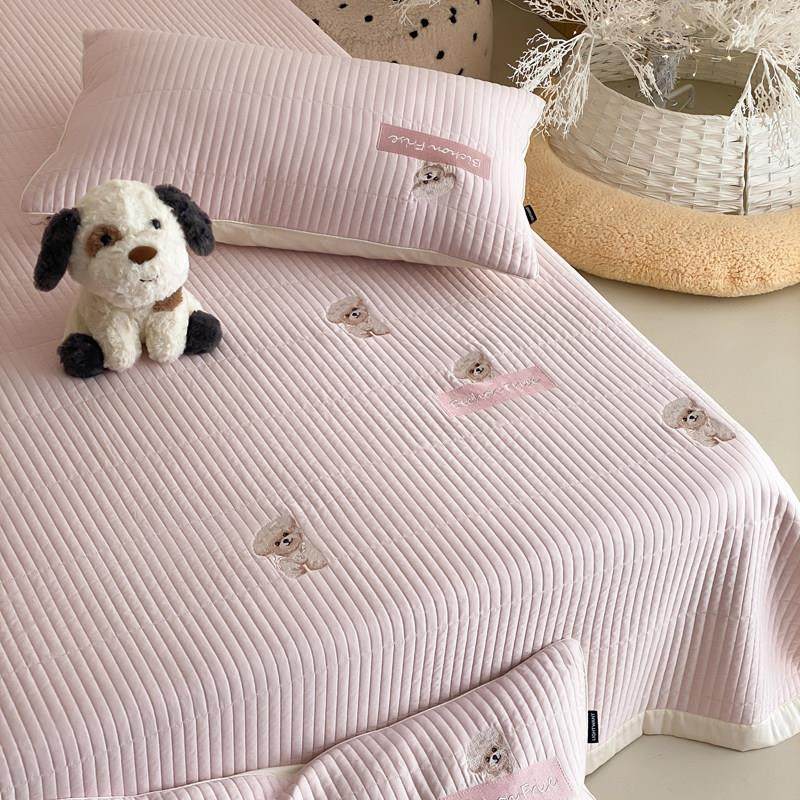 韩国毛巾绣夹棉床单床盖三件套双面全棉绗缝春秋被四件套床上用品