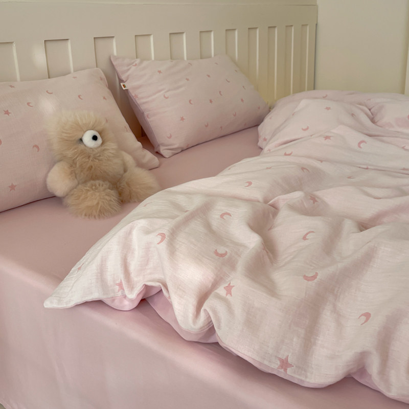 A类双层皱皱纱全棉四件套裸睡透气纯棉纱布被套床单床笠床上用品