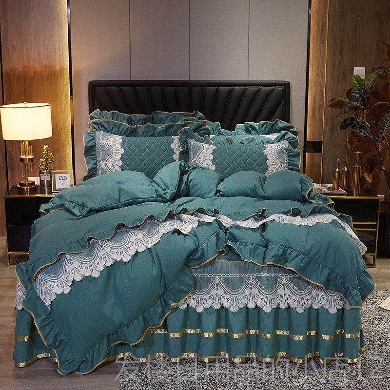 韩国高级床e盖款韩版四件套仙气花边全棉四季可用床上用品绗缝夹