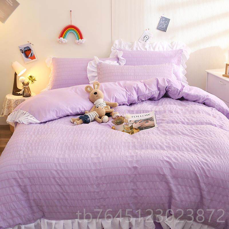 高档韩国泡纱件套带被芯子枕芯套装床上四用品公主风泡床单款被三