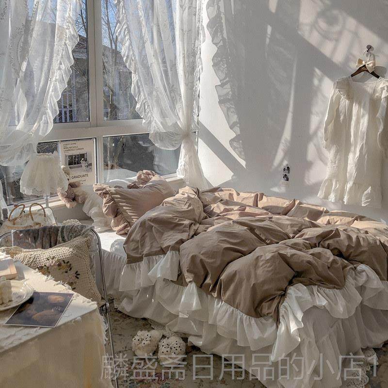正品优恋韩国ins主风全棉水公洗棉床裙件套纯棉被床上1套.5/1.四8