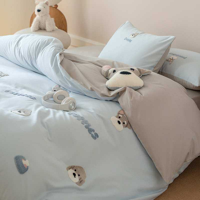 韩国设计师款全棉卡通刺绣四件套60支水洗长绒棉床单被套床上用品