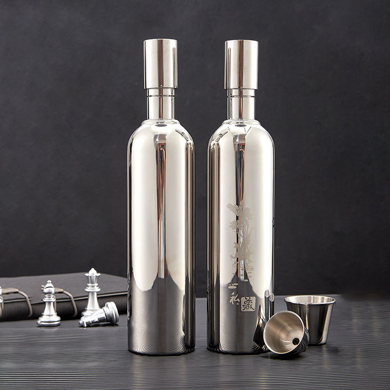百诚高档304不锈钢酒壶随身户外1斤2两一斤二两600ml金属酒瓶刻字