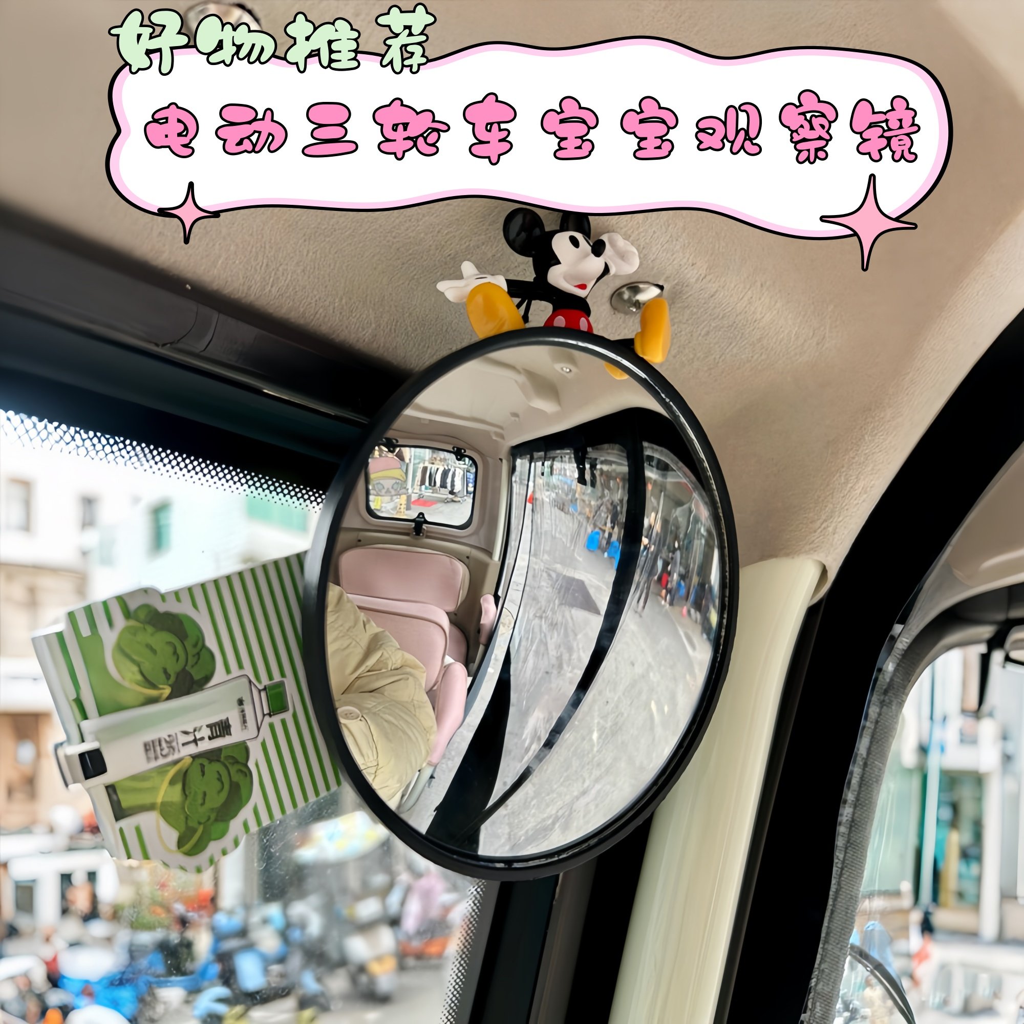 电动三轮车后视镜辅助镜强力吸盘式大视野广角镜摩托车电动车BB镜