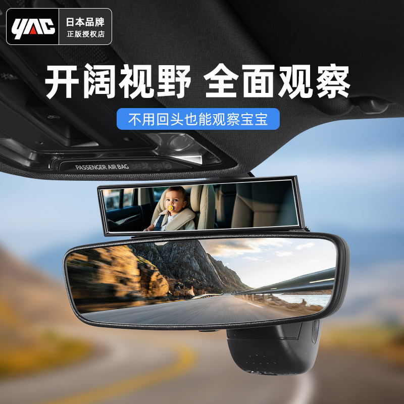 日本YAC汽车后视镜辅助镜超清车内宝宝观察镜后排儿童盲区广角镜
