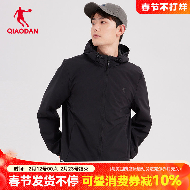 中国乔丹运动风衣男装2026春季新款连帽梭织防风外套男士休闲上衣