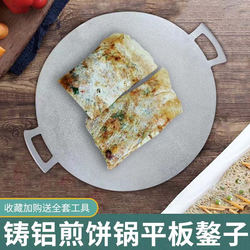 特大号铝煎锅平底锅家用水煎包锅烙饼锅老式铝平锅手工铸铝铝鏊子