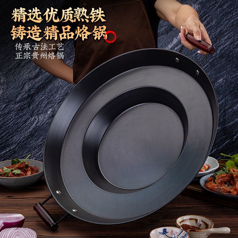贵州烙锅防烫加厚电磁炉锣锅边洋芋炸小吃炸土豆摆摊煎锅凹型平锅