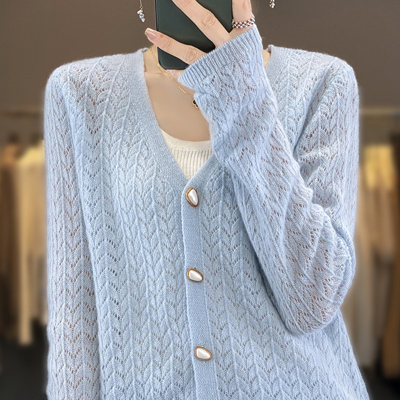 一线成衣秋冬羊绒衫时尚百搭女士套头纯色宽松镂空针织毛衣打底衫