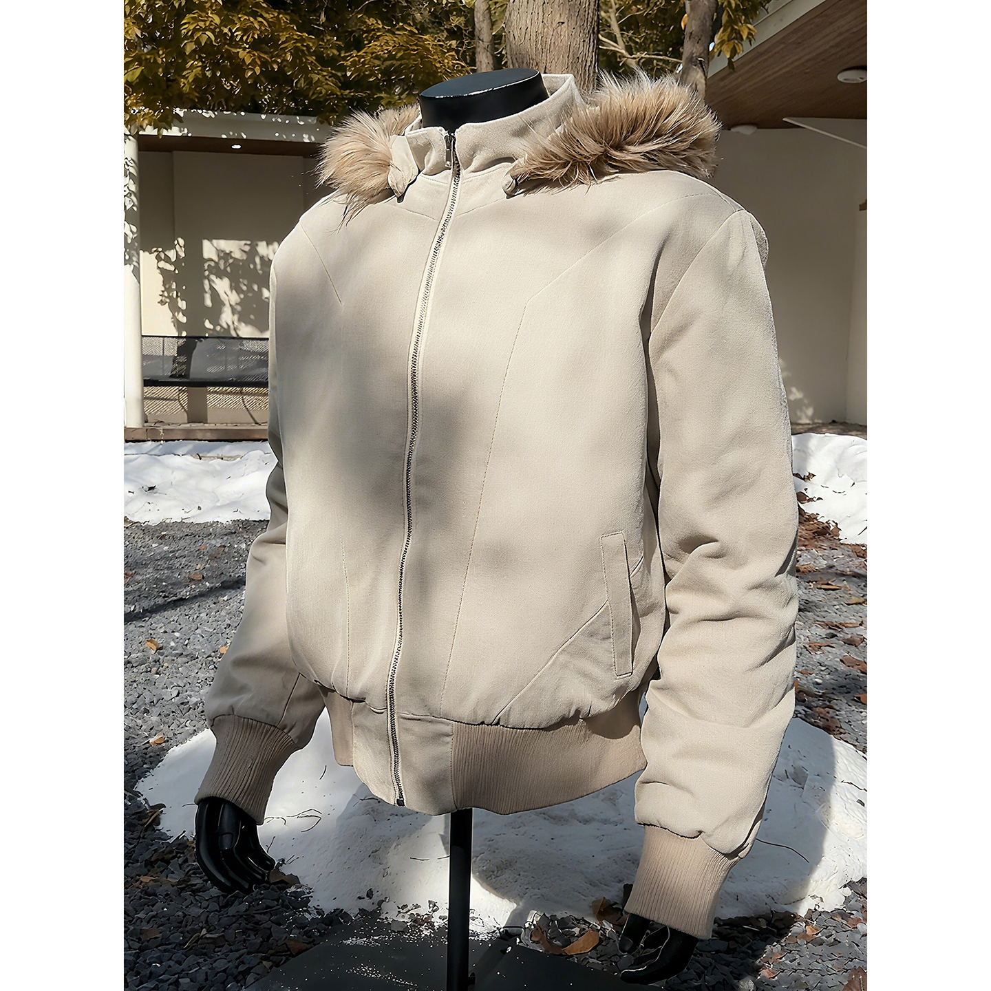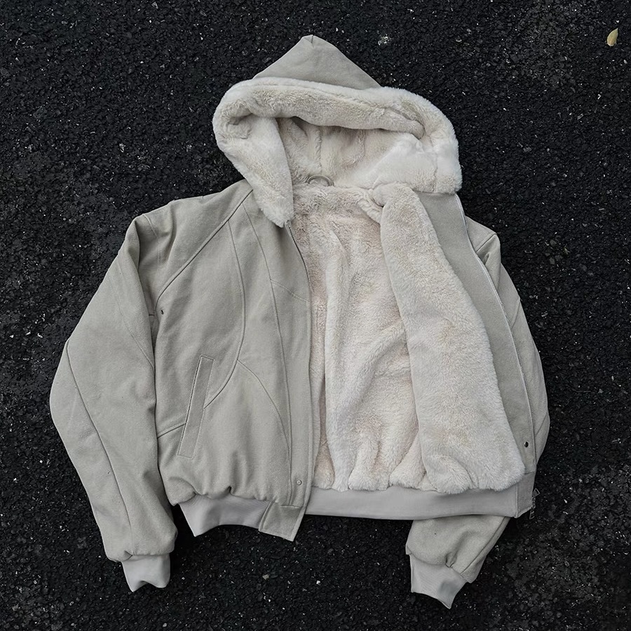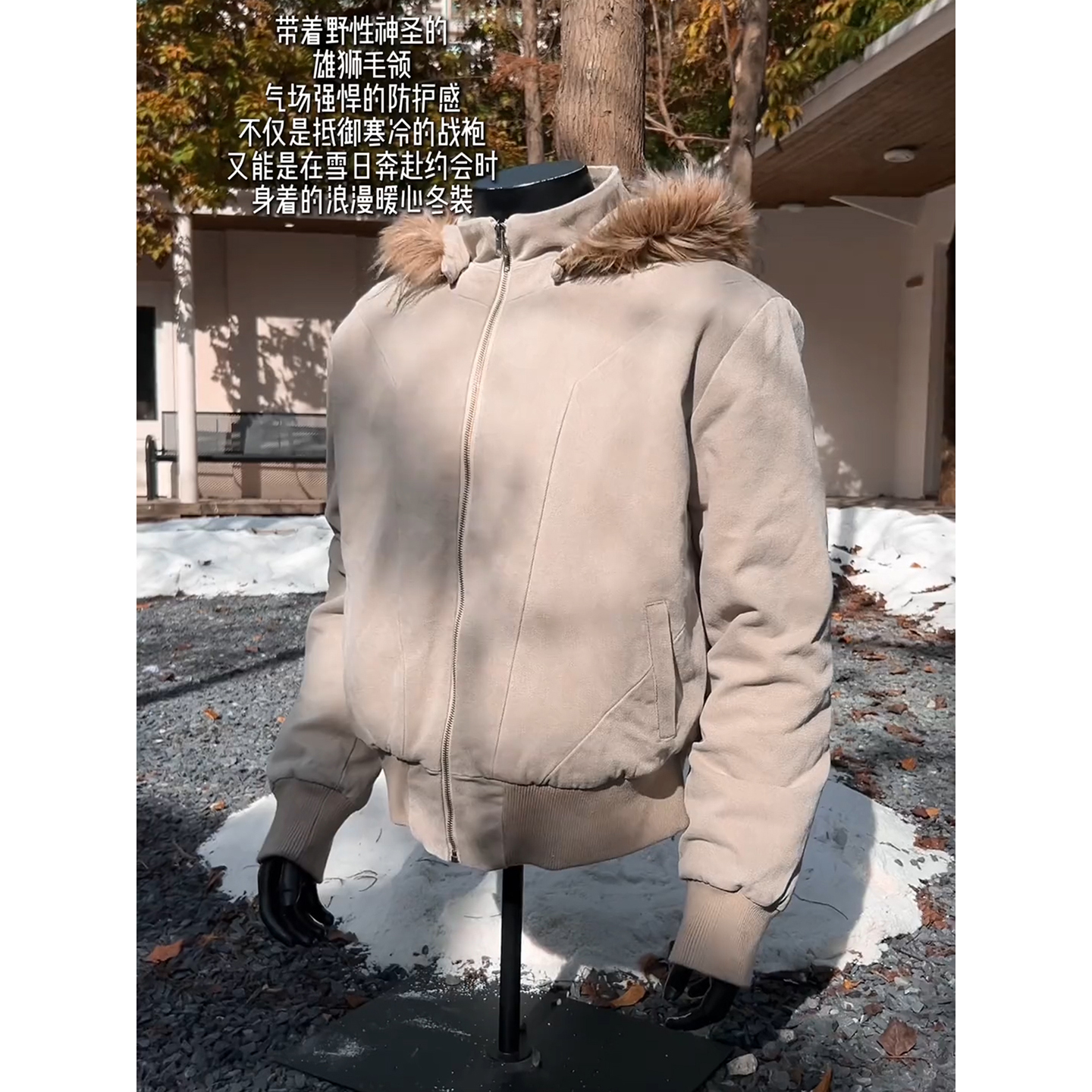银狐解构座山雕毛领棉衣男冬季加厚连帽帆布外套美式短宽夹克棉服