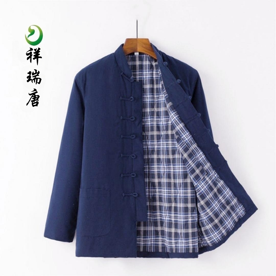 祥瑞唐秋冬纯棉老粗布唐装棉袄中老年保暖棉服男中式加厚棉衣外套