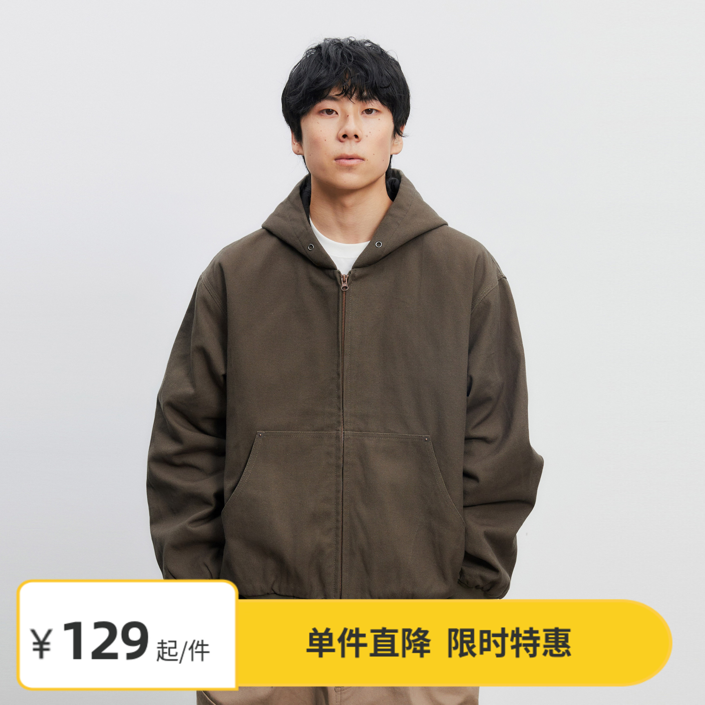 【6折特惠】Vavu美式插袋帆布拉链棉衣保暖sorona棉服休闲夹克男