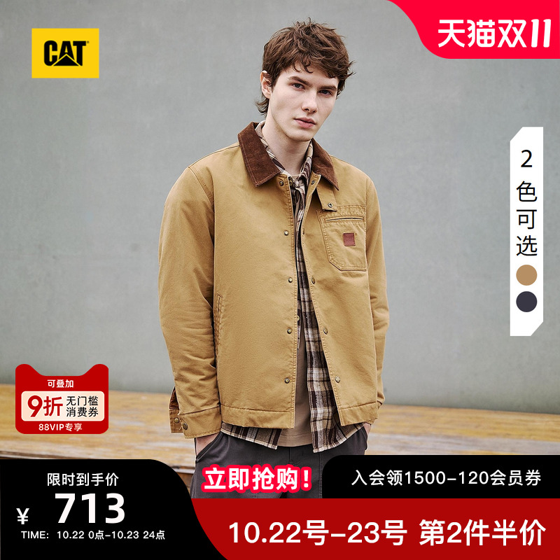 CAT卡特25秋季新品男士皮质贴布口袋底特律工装灯芯绒翻领棉服