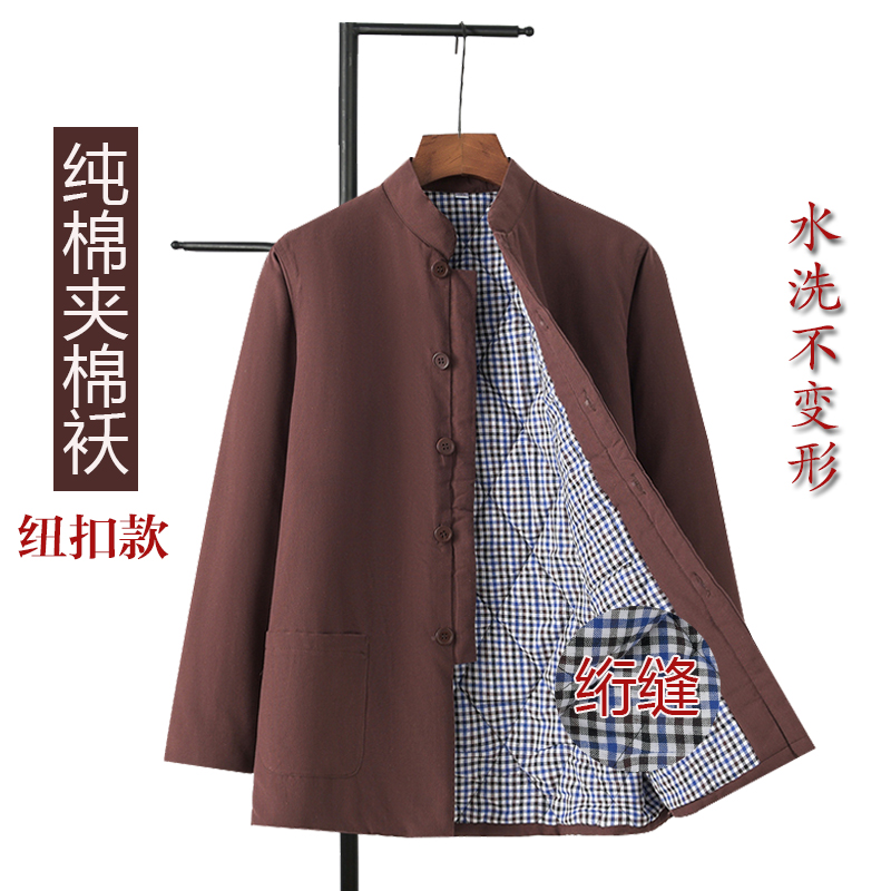 秋冬中老年棉袄男纯棉粗布保暖纽扣薄款棉衣中式立领爸爸棉服外套