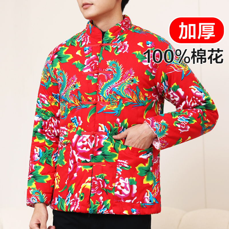 冬季东北大花布棉袄男成人纯棉花手工棉衣加厚保暖民族风外套表演