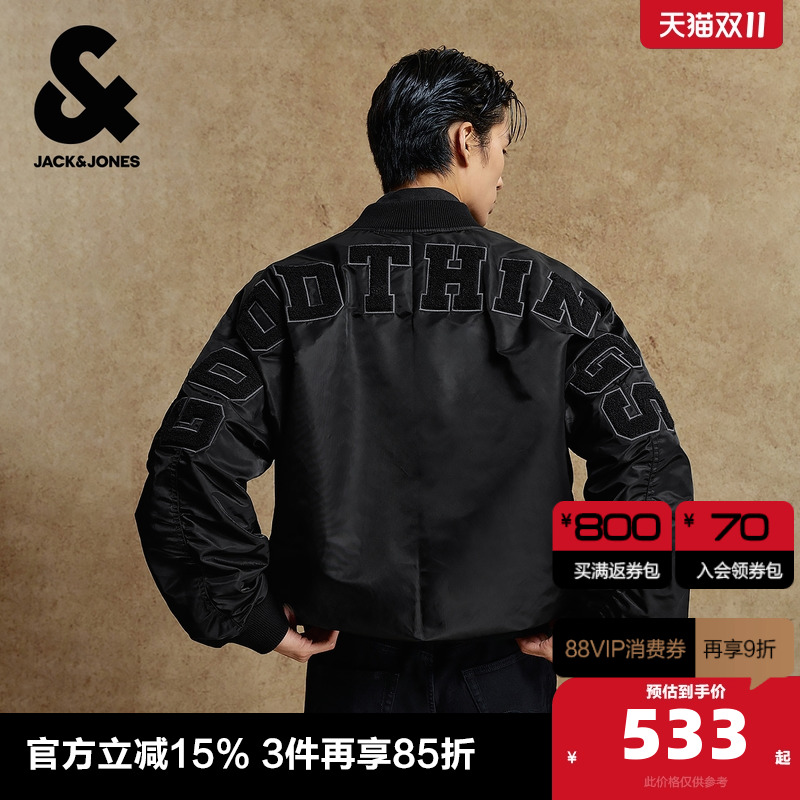杰克琼斯男装棉服秋季2025年新款毛巾绣贴布棒球领廓形保暖外套