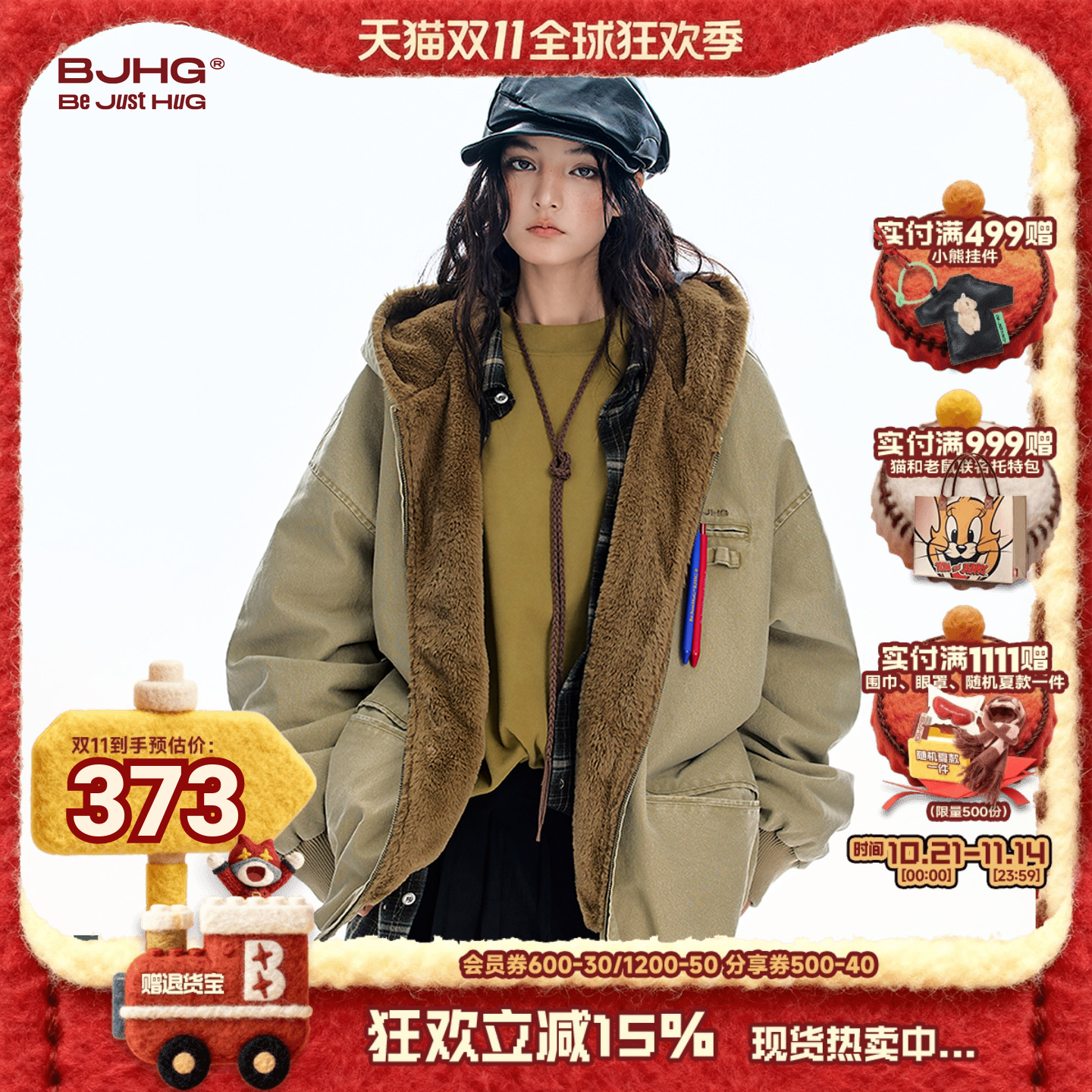 BJHG不计后果座山雕工装棉服外套男冬帆布复古做旧连帽美式棉袄女