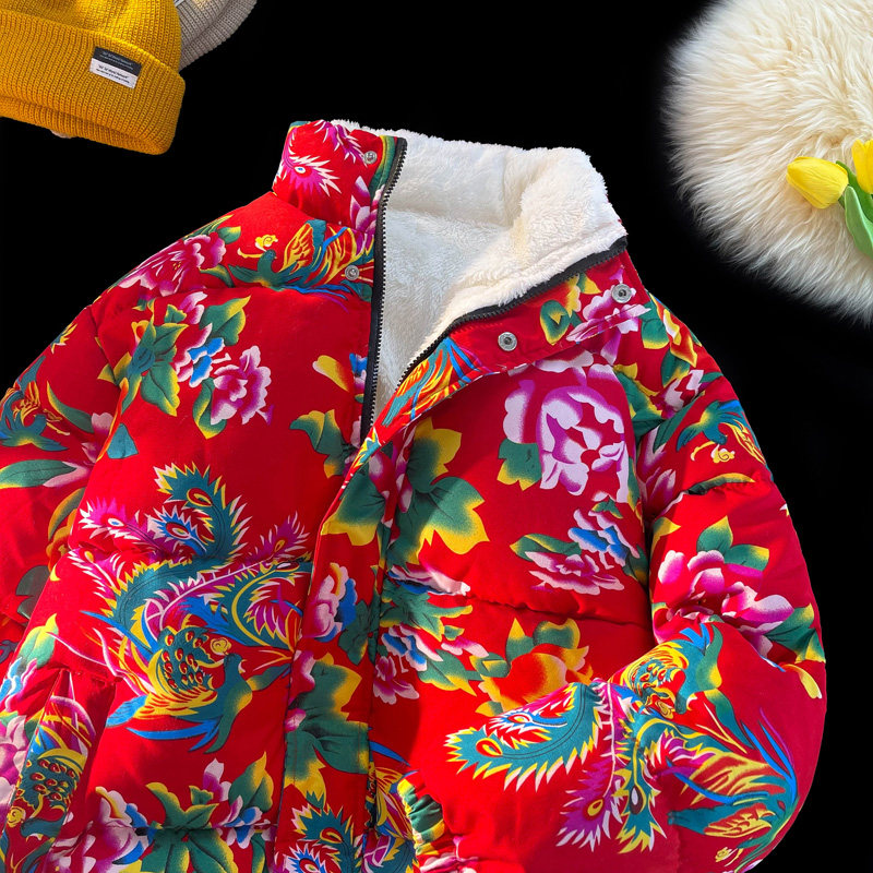 情侣装羊羔毛东北大花布棉袄外套男冬季新款棉衣加厚国潮大码棉服