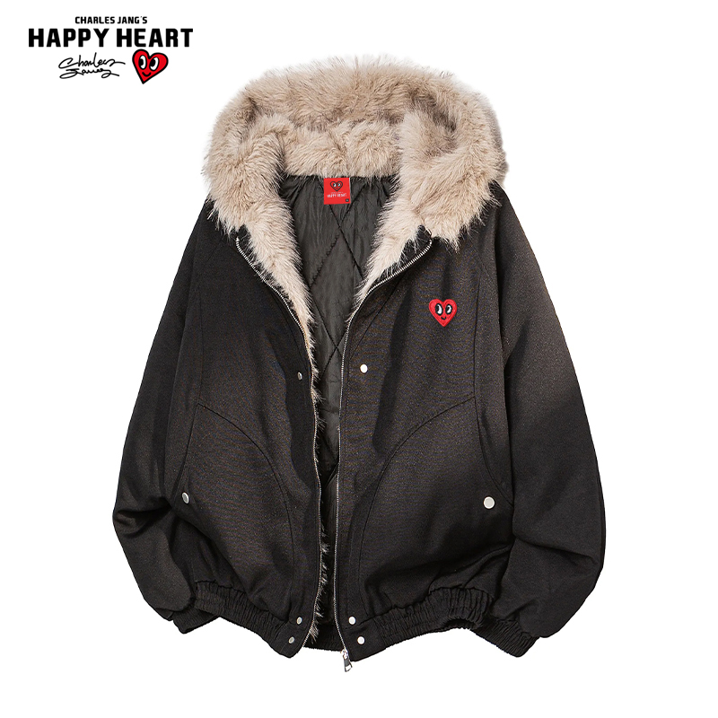 查尔斯桃心冬季座山雕美式棉服外套夹棉帆布水洗男女同款毛领棉衣