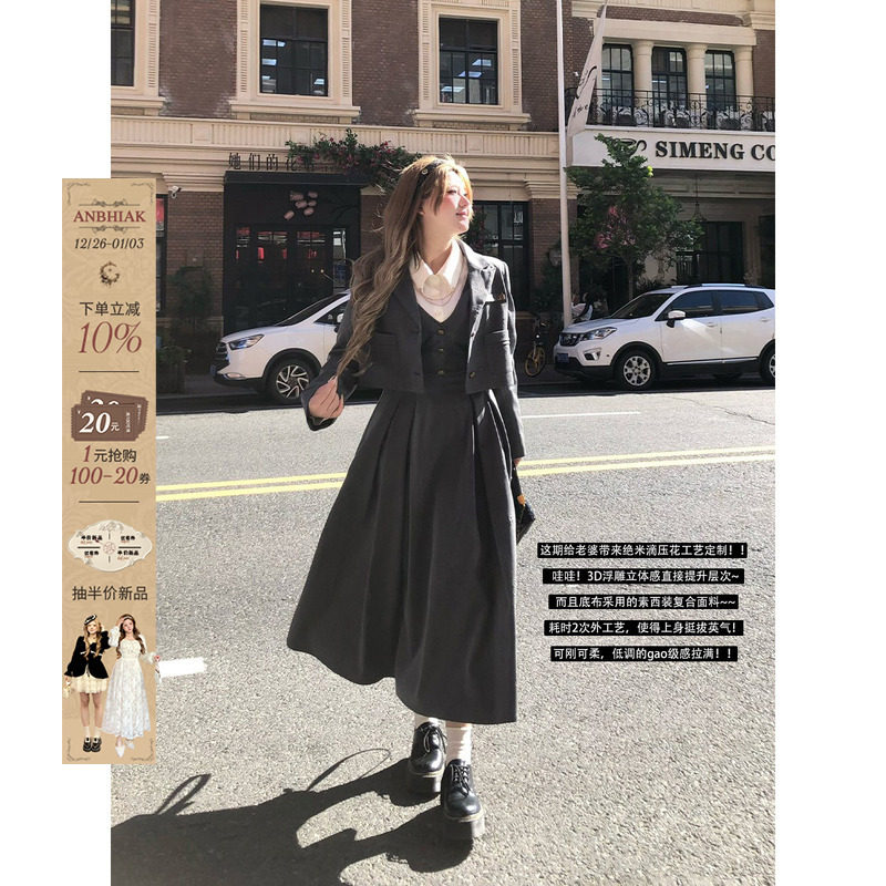 韩系老钱风西装外套半身裙两件套女秋冬新款高级感小个子套装穿搭