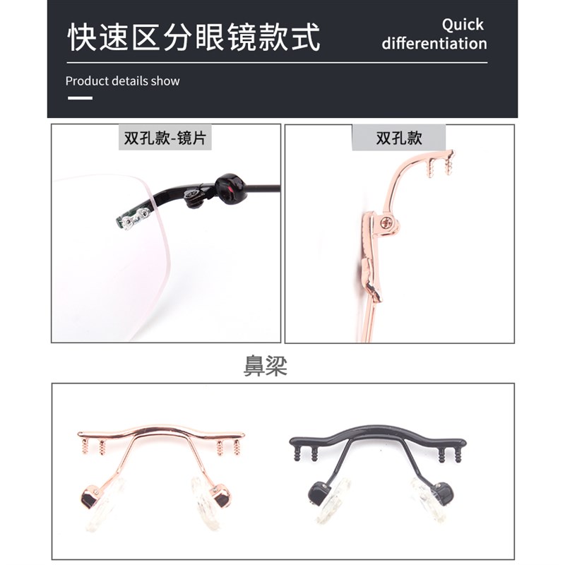 无框眼镜腿脚一对通常用男女款双孔切边睛腿镜脚配件鼻托支架中梁