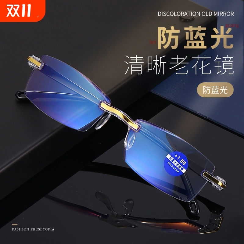 超轻无框钻石切边防蓝光老花镜中老年专用高档商务护目高清老光镜