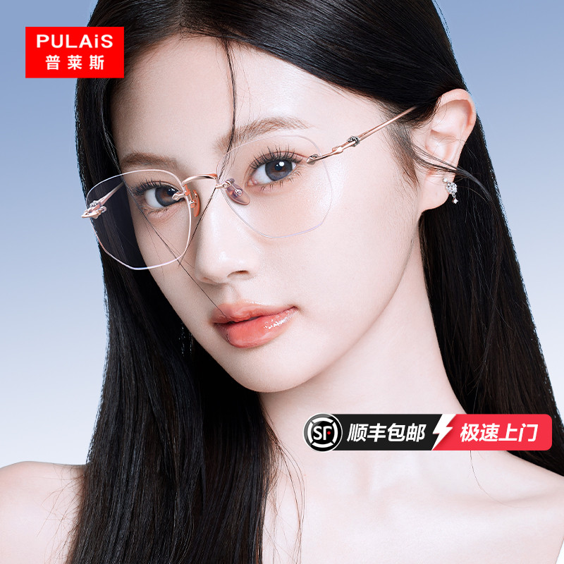 普莱斯无框眼镜女款近视可配度数高级感切边防蓝光超轻金丝眼睛架