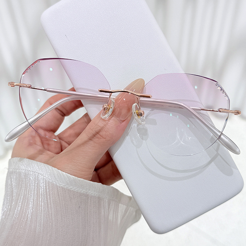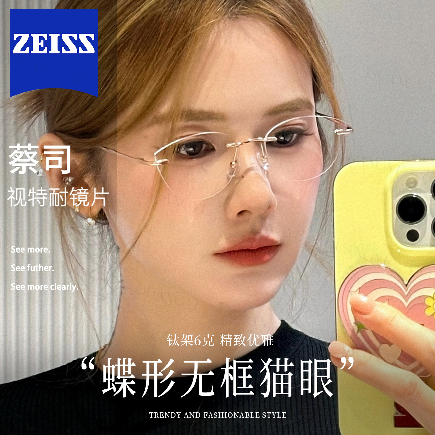 光野蔡司蝶形猫眼钛架无框眼镜女可配度数高智感切边防蓝光眼睛架