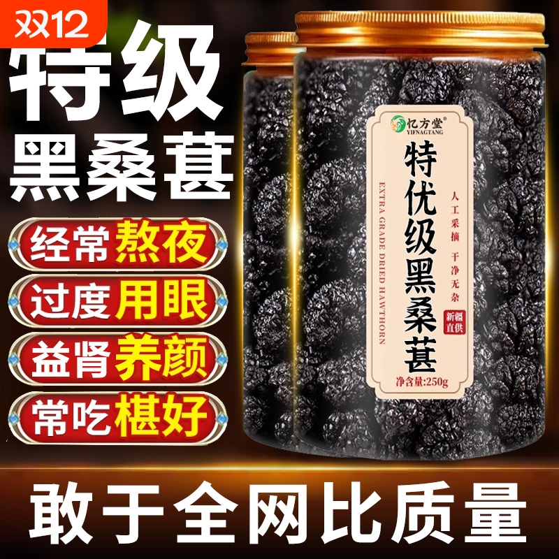 特级桑葚干黑桑椹正宗新疆中药材泡水免洗无沙官方旗舰店桑葚果干