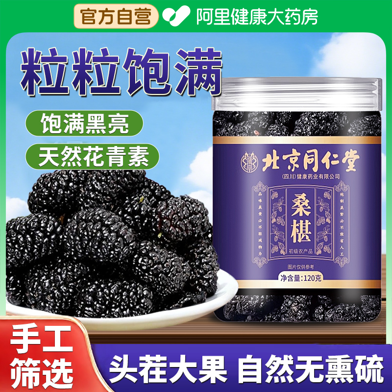 北京同仁堂桑葚免洗即食大果黑桑椹泡水泡酒无熏不染优质桑葚果干
