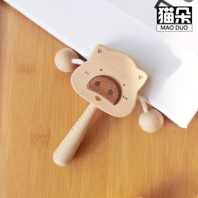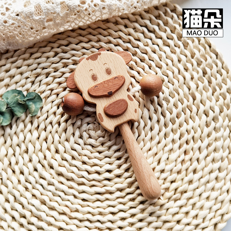 新生婴儿拨浪鼓礼盒满月宝宝 小孩可啃咬原木可以吃的玩具口欲期