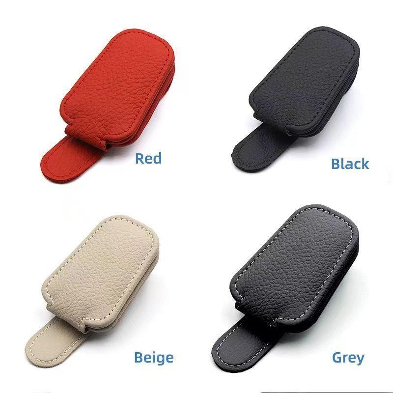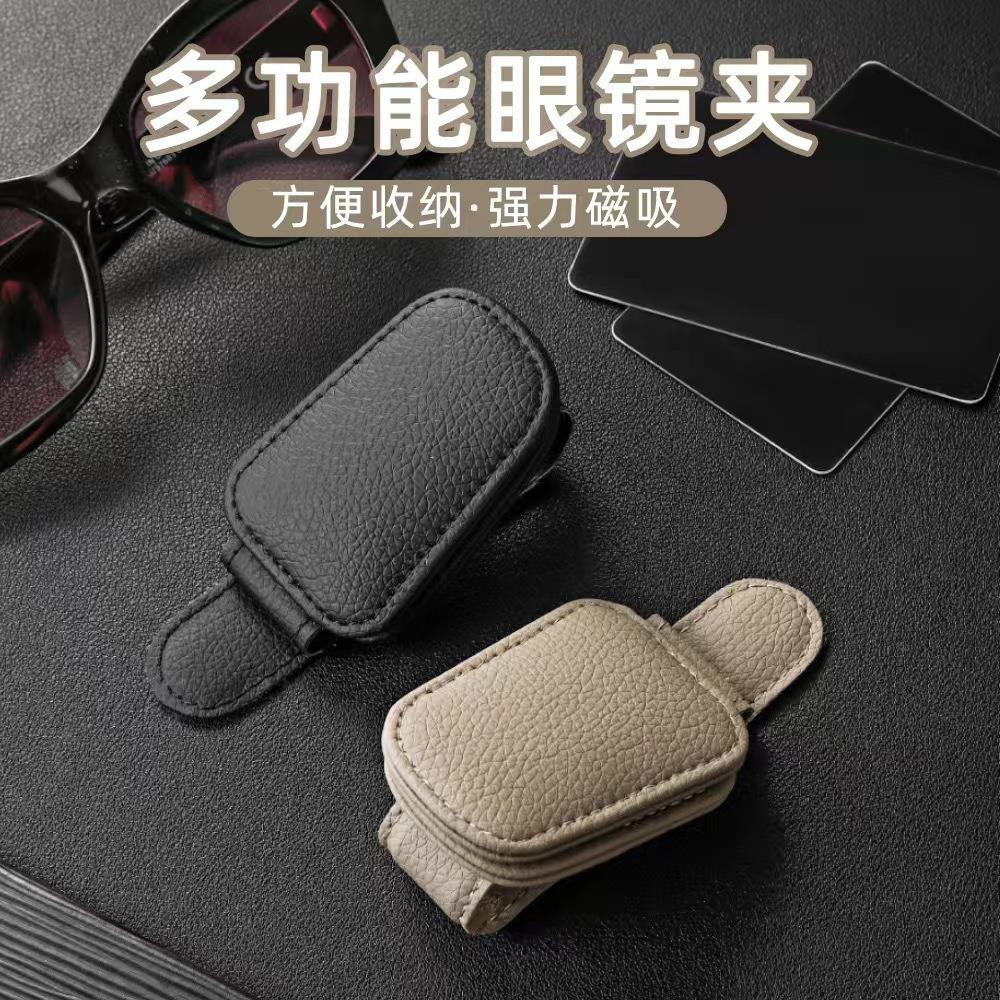 适用车用眼镜夹多功能车载墨镜支架眼镜盒皮革遮阳板卡片收纳夹子