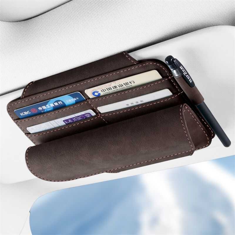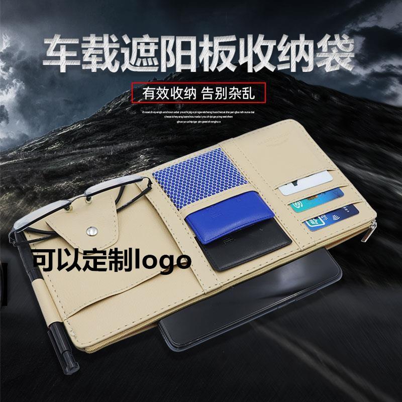 多功能皮革车载收纳袋遮阳板套卡片夹驾驶证票据卡包汽车用眼镜夹