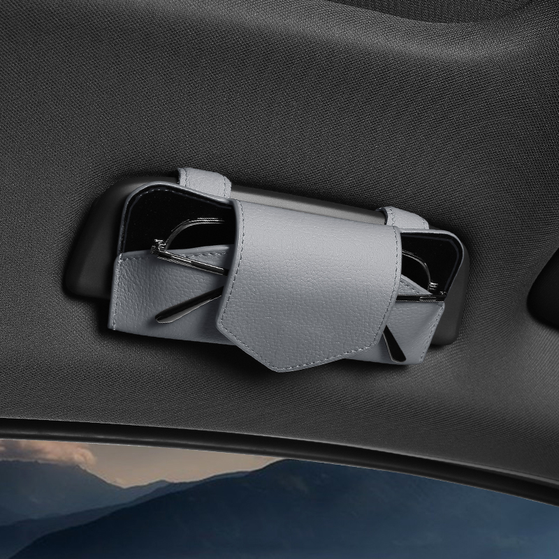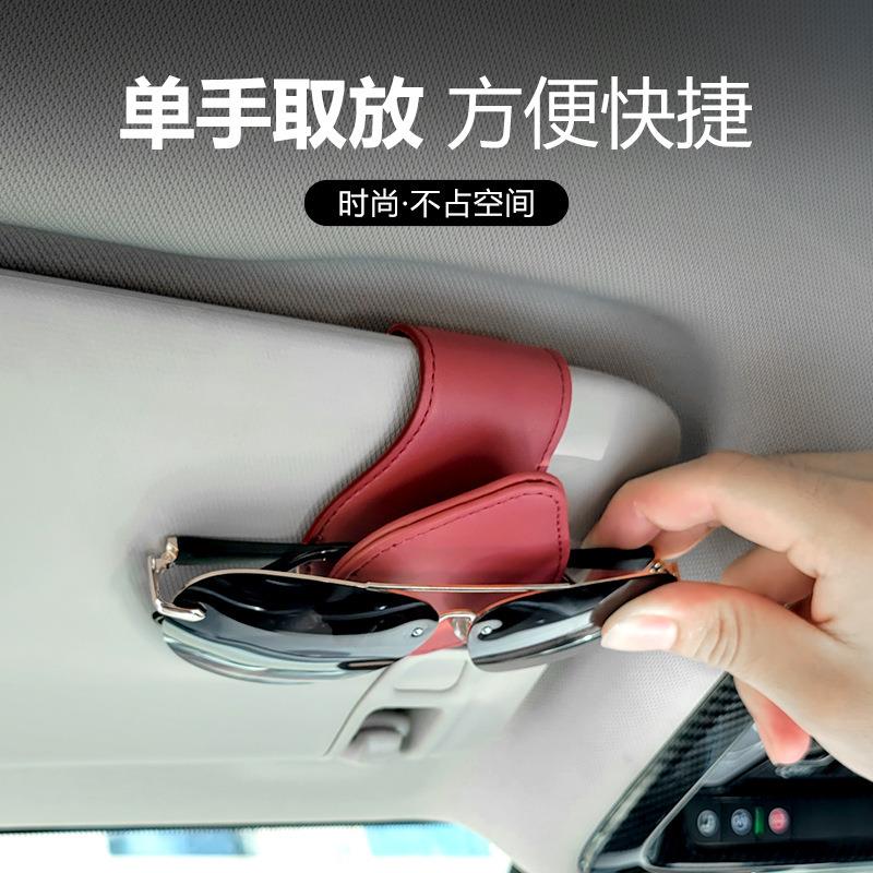 车载遮阳板眼镜盒通用太阳镜夹收纳架车顶用眼镜架牛皮车用眼镜夹
