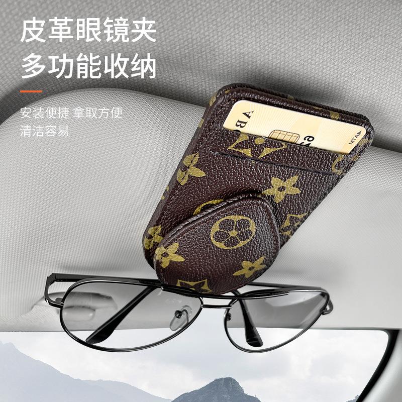 车用眼镜夹车载多功能太阳镜皮革支架遮阳板证件墨镜卡片票据收纳