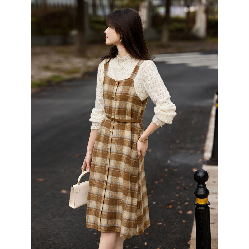 - 秋冬无袖毛呢连衣裙