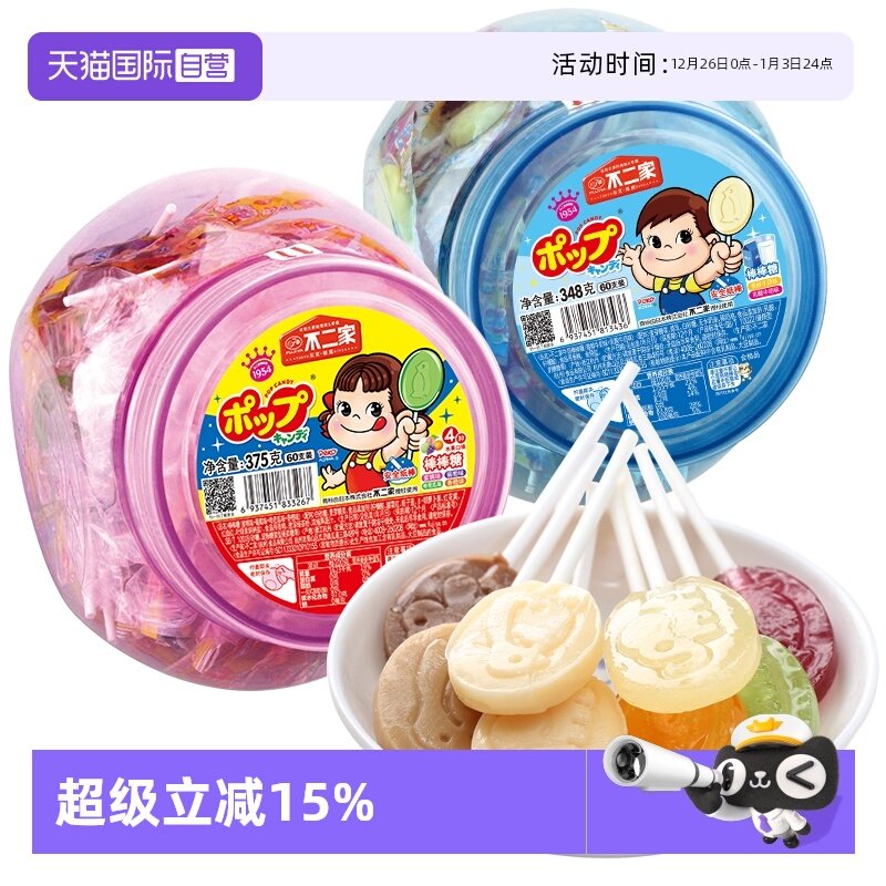 【自营】不二家棒棒糖60支装儿童水果糖果零食棒棒糖混合口味桶装