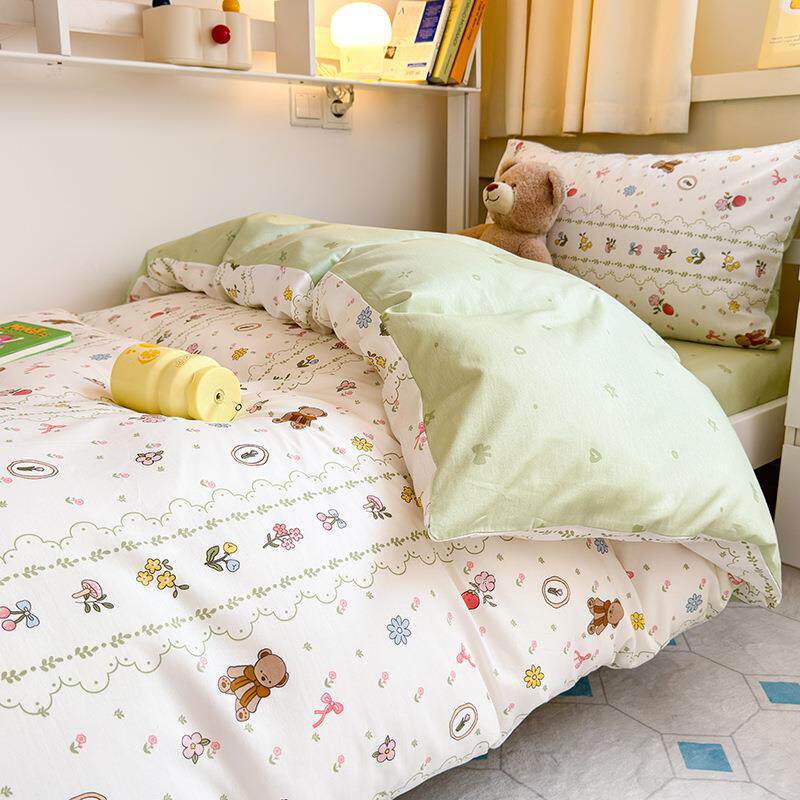 A类床上四件套水洗棉被罩母婴级床单被套床品学生宿舍三件套床笠3
