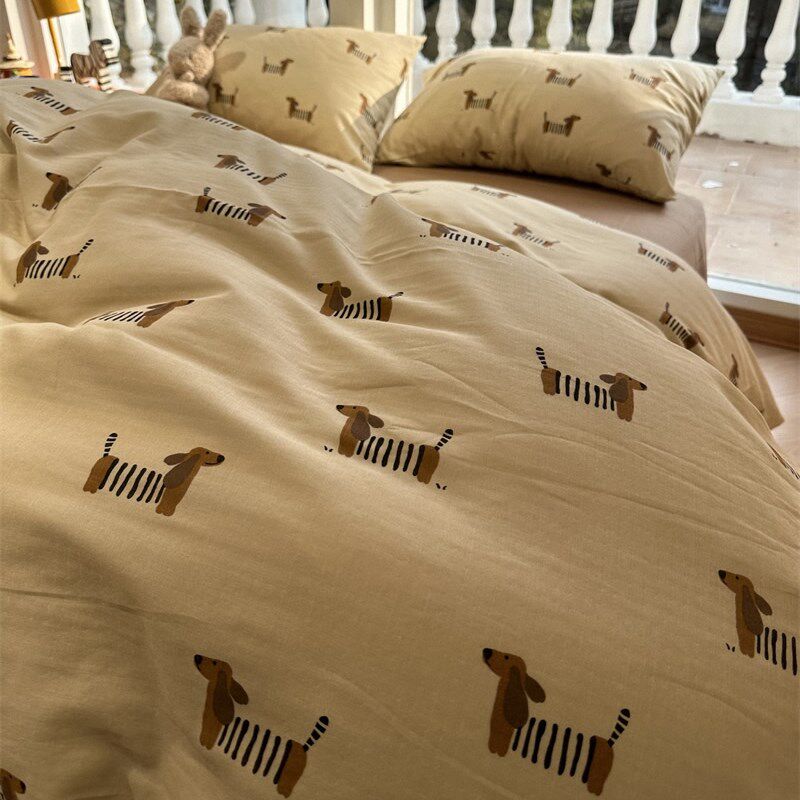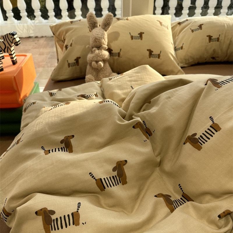 A类咖色超柔软双层纱修修狗纯棉四件套1.5m/1.8米床床单被套3件套