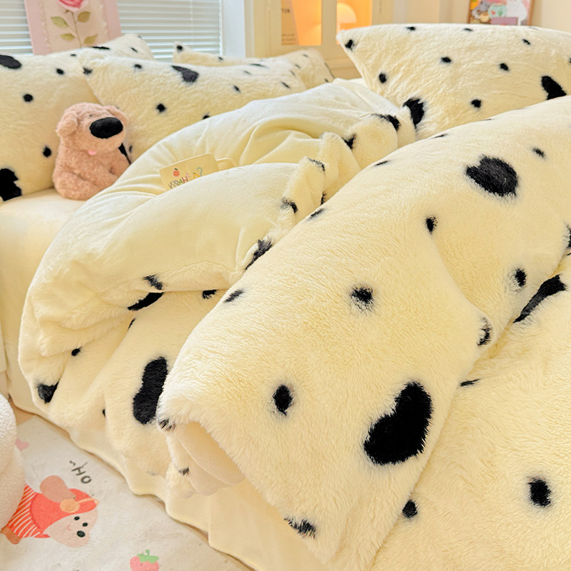 ins爱心加厚兔毛绒床上四件套儿童床品牛奶绒珊瑚绒床单被套3件套