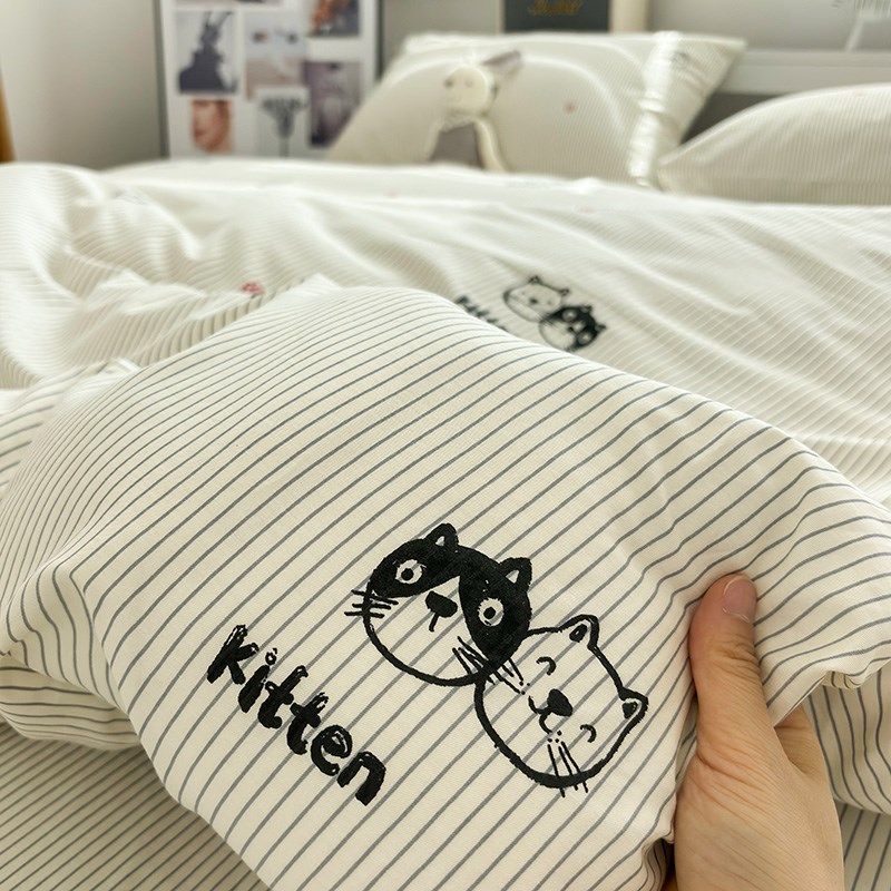 线条萌猫纯棉床上床品四件套全棉2024新款学生宿舍床单被套3件套