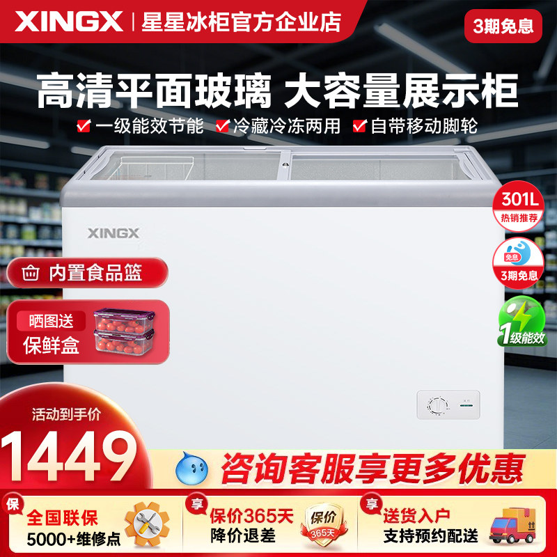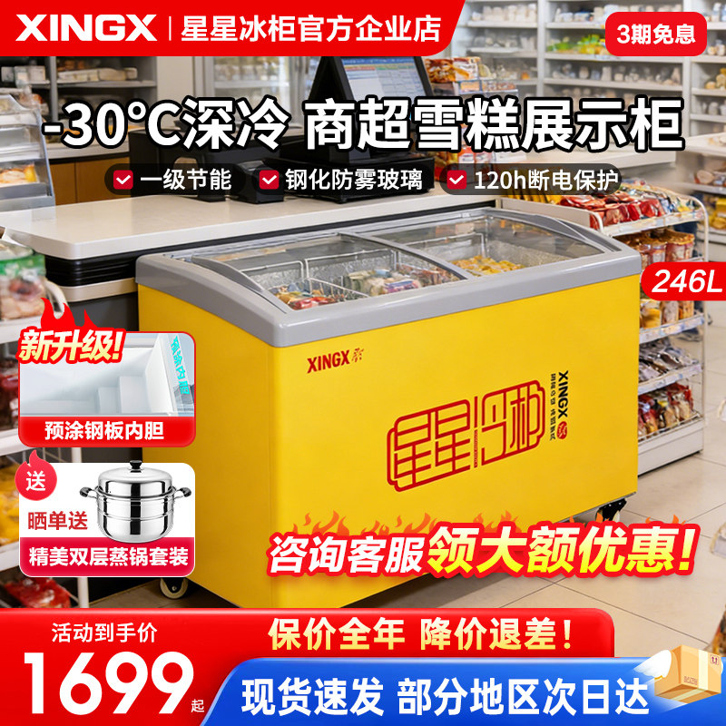 星星冰柜商用雪糕柜303摆摊冷藏展示卧式冷冻超市冷柜官方企业店