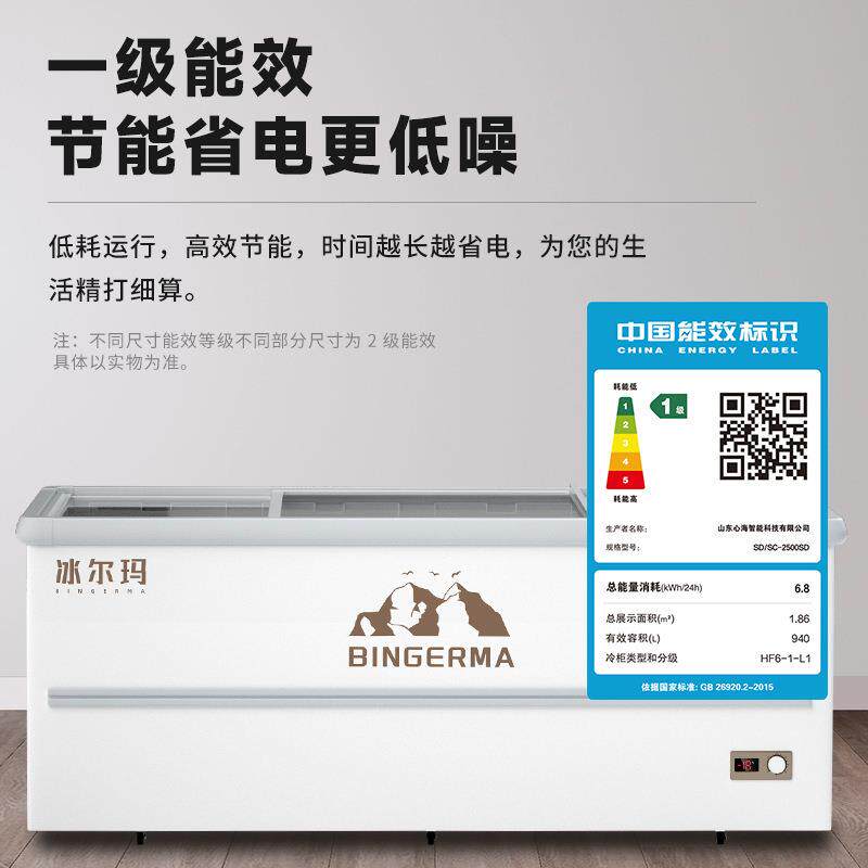 冰冻柜商用速冷冻柜264雪糕柜超市冷柜大拉容量玻璃推式玻璃盖透