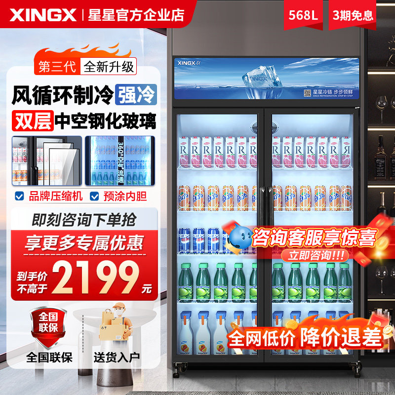 星星冷藏展示柜商用保鲜柜饮料柜冰箱冷柜超市立式风冷冰柜旗舰店