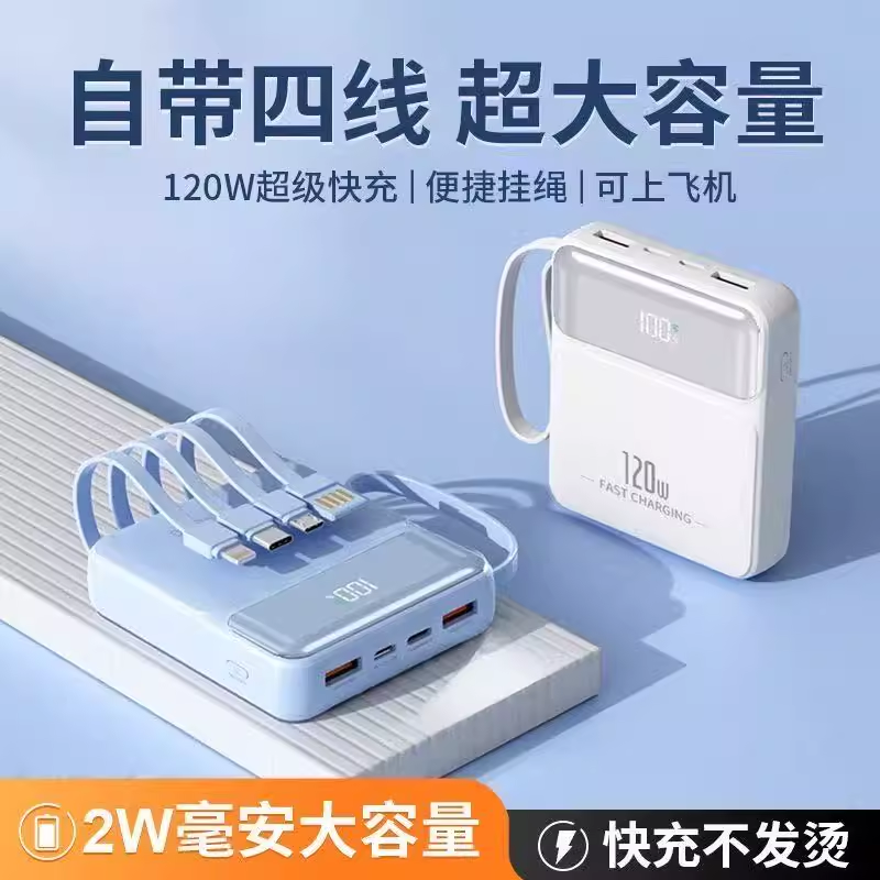 120W自带线充电宝20000毫安超薄小巧快充大容量适用小米华为苹果7
