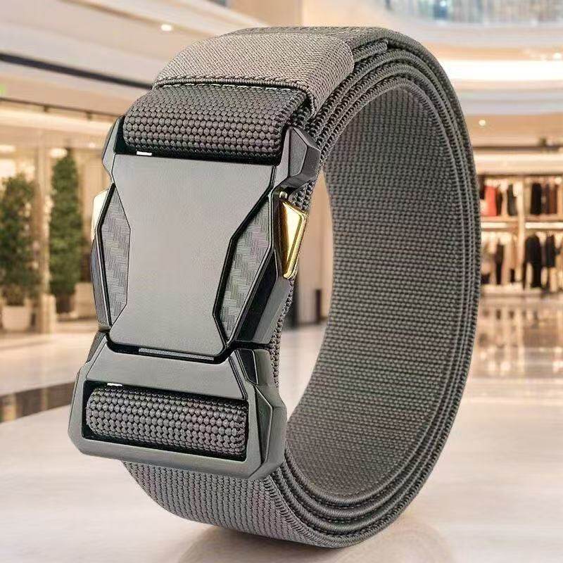 对插扣弹力皮带男自动扣时尚百搭潮流男士腰带户外尼龙帆布裤腰带