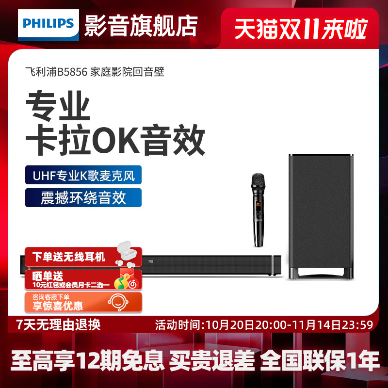 飞利浦B5856电视回音壁音响家用唱歌ktv家庭影院电视影院级家用