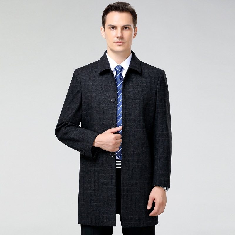 中长款羊绒毛呢大衣男秋冬新款中年商务西装领桑蚕丝羊毛风衣外套
